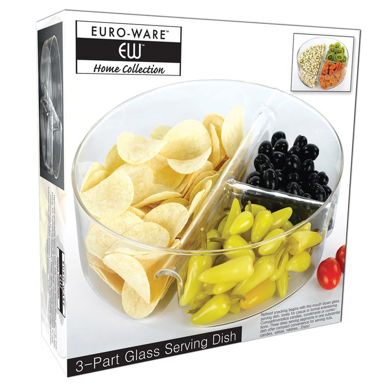 Glass bowl is divided into three parts. Importer and exclusive agent in Saudi Arabia: Karaz linen.