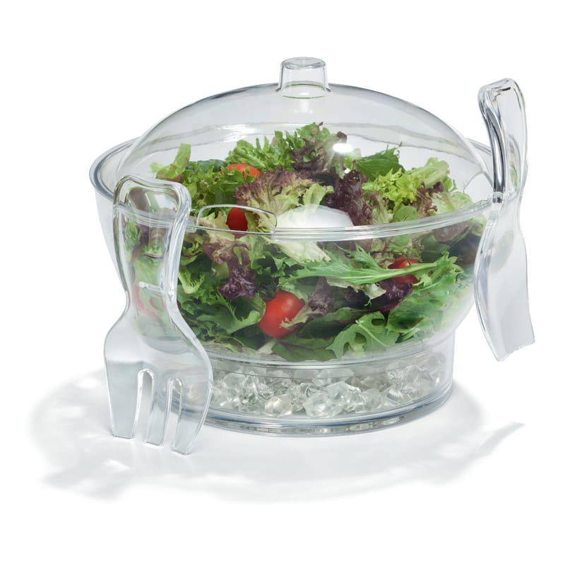 Material: Acrylic 6-liter bowl, with a cover. Keeps food chilled over a Bed of Ice. Importer and exclusive agent in Saudi Arabia: Karaz linen.