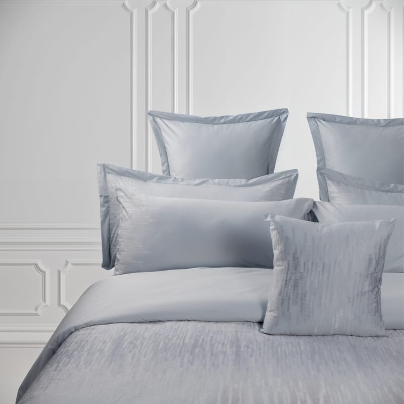 - Silver ripples across the centre of the comforter and along the edges of the decorative pillows add sophistication and charm.