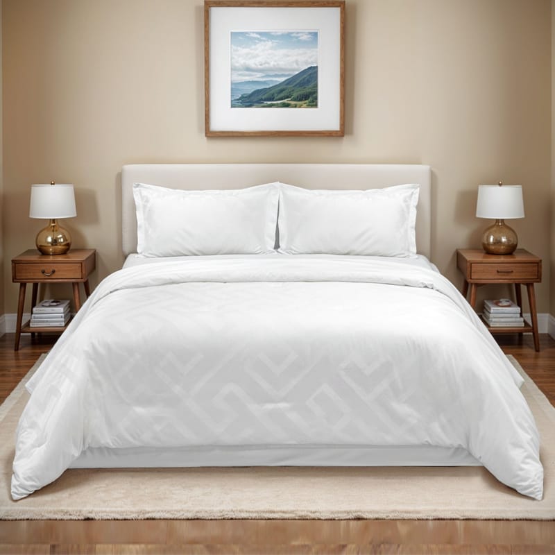 Looking to recreate that cozy, hotel-quality comfort in your own bedroom? Olympus is a king size cotton white hotel Comforter Set, made from pure sateen cotton. Its modern design incorporates delicate geometric patterns that enhance its aesthetic appeal.