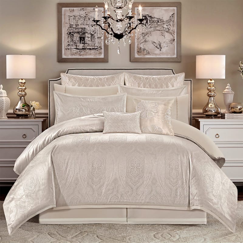 11 pieces duvet set – Exclusive Karaz Linen design Material: Outer face: Jacquard woven polyester. Side that contacts the body: Pure cotton. What is Jacquard weaving? Karaz Linen is the first Saudi brand to use this method of weaving. Invented in 1801 by Joseph Jacquard, the Jacquard woven designs do not wrinkle after usage or washing, and they are very durable. Specifications: King size: 1 Duvet 270 x 240 cm 1 Fitted sheet 200 x 200 + 40 cm (Pure cotton) 1 Bed Base Cover 200x200+42cm (This cover is to be placed under the mattress) 2 Shams 90 x 50 cm 2 Pillowcases 90 x 50 cm (Pure cotton) 2 Euro shams 65 x 65 cm 1 Decorative pillow 45 x 45 cm 1 Decorative pillow 30 x 45 cm Washing instructions: Dry cleaning only. Warranty: One year guarantee from the date of purchase if the filling is lumpy or the color changes, while following washing instructions (See Karaz Linen Warranty Policy). Karaz Linen… Comfort sleep