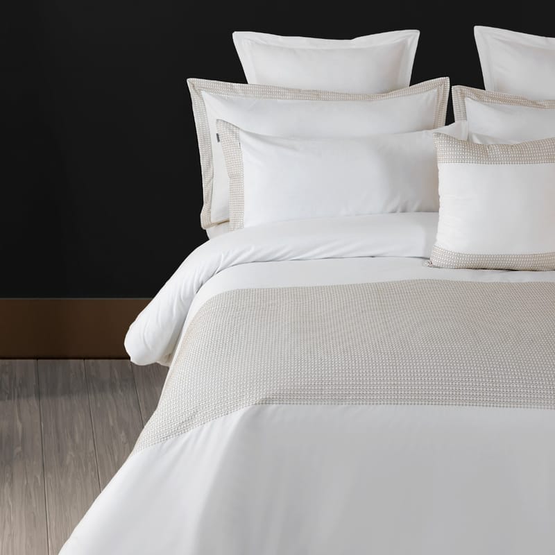 Magnificent, hotel-grade beauty wrapped in understated luxury. Turath is a white summer comforter set made from pure natural cotton, combining ivory and beige in perfect harmony. Delicate woven detailing along the edges gives it a refined look that suits modern, hotel-inspired bedrooms and creates a sense of order and calm.