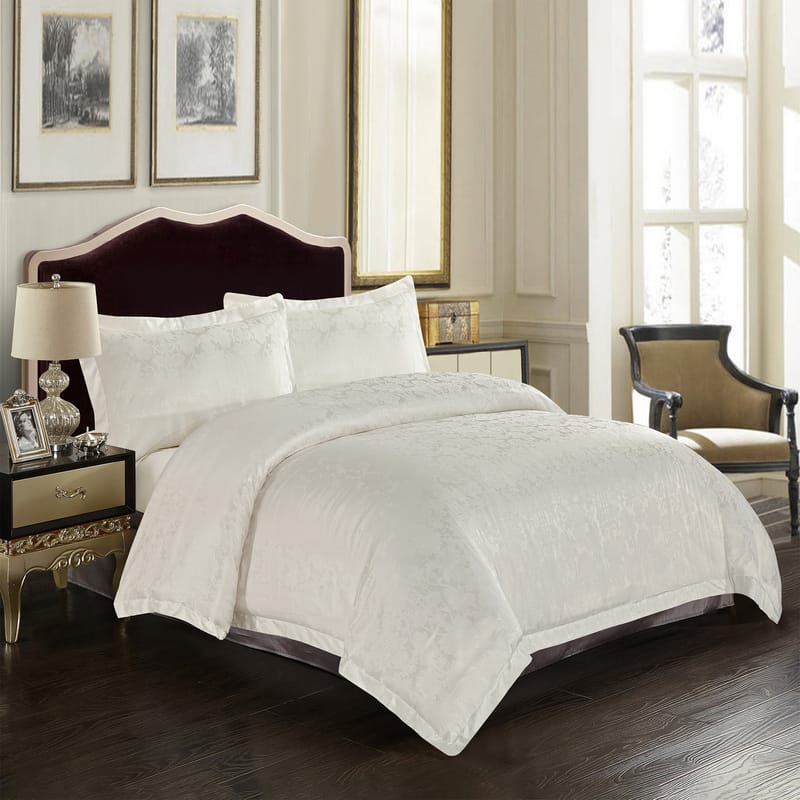 100% silk exterior woven with jacquard technology, where the threads intertwine in several layers in luxurious and fixed embroidery.